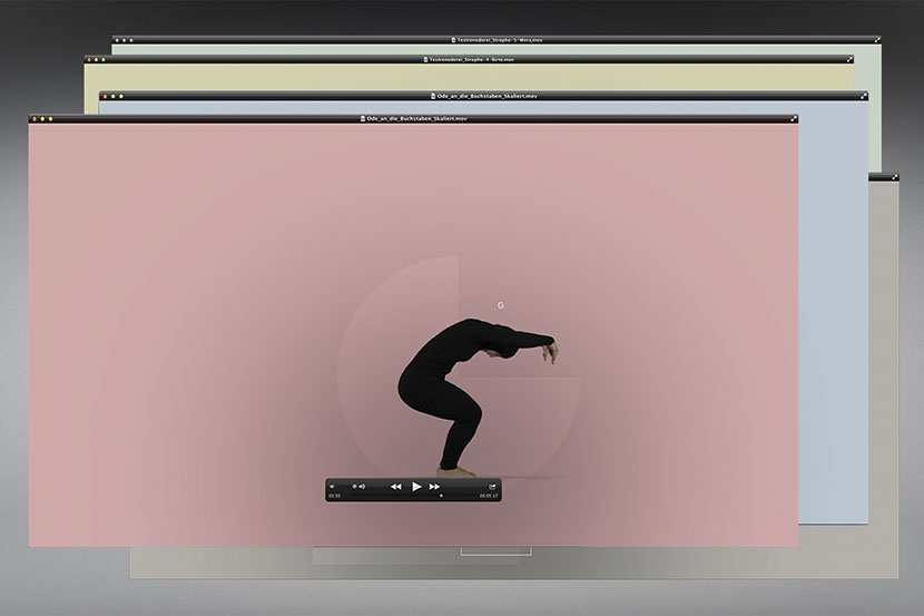 Ode an die Buchstaben ist ein freies Projekt, bestehend aus fünf Filmen und einer fünfteiligen Buchreihe, die während meines Studiums an der HBK Braunschweig in einem Zeitraum von eineinhalb Jahren entstehen. Das gesamte Projekt beschäftigt sich mit Buchstaben und deren Interpretationsmöglichkeiten und Neuinszenierungen. Anfangs erarbeiten eine Kommilitonin und ich einen Film, dessen fünf Hauptdarstellerinnen die 26 lateinischen Großbuchstaben performen und deren Darbietung wir mit (typo-)grafischen Animationen und einem experimentellen Ton verbinden. Später knüpfe ich an diese erste Auseinandersetzung mit Buchstaben an und konzipiere und gestalte im Rahmen meiner Bachelor-Abschlussarbeit eine Buchreihe, bestehend aus fünf Bänden, die sich der Performances bedient und diese mit mehreren von Inga Plönnigs und mir geschriebenen Textcollagen arrangiert.